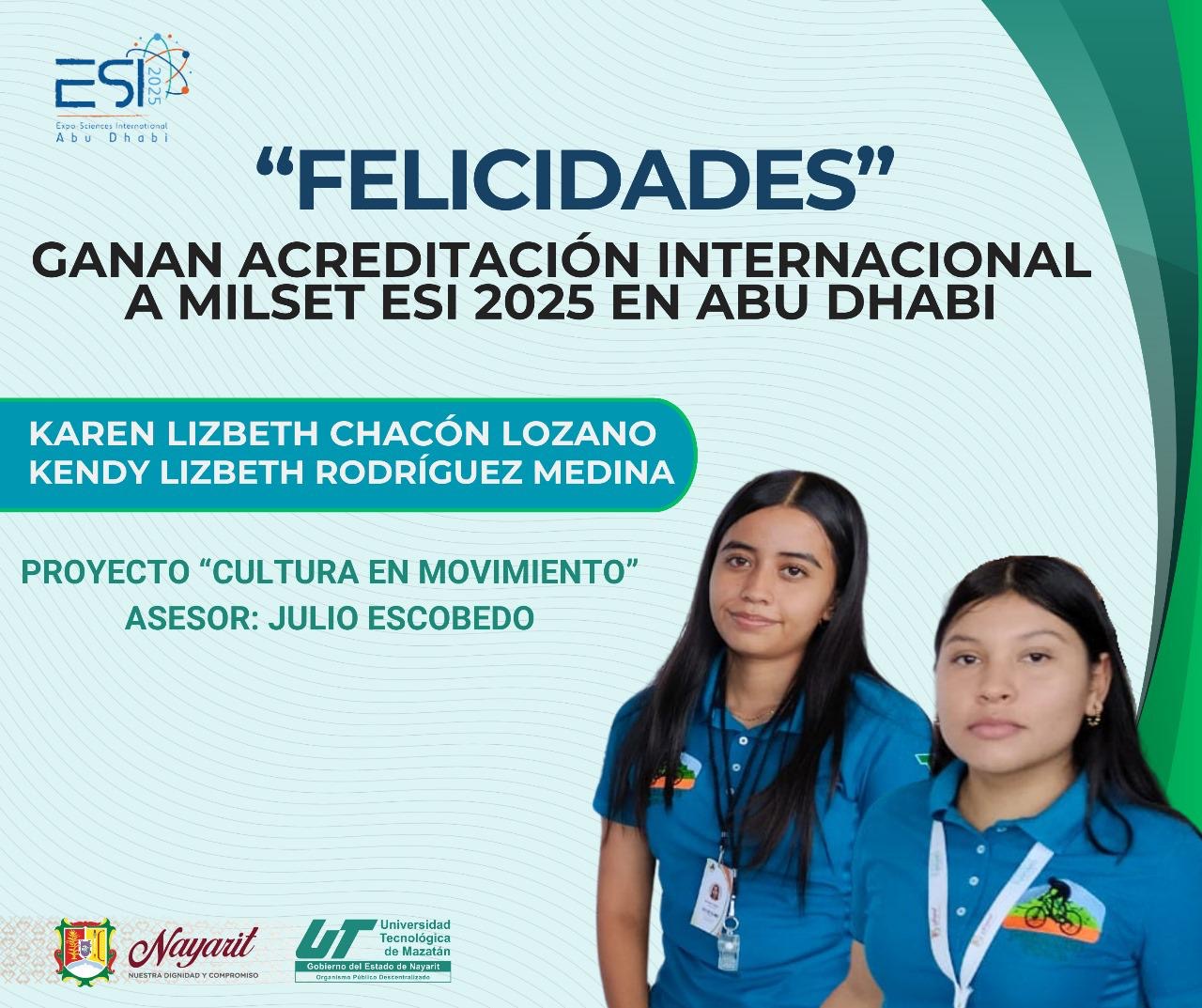 Las alumnas de la licenciatura en Turismo de la Universidad Tecnológica de Mazatán, ganaron su acreditación internacional para participar en el Milset Esi 2025, el cual se llevará a cabo en Abu Dhabi, Emiratos Árabes Unidos, con el proyecto: "Cultura en Movimiento".